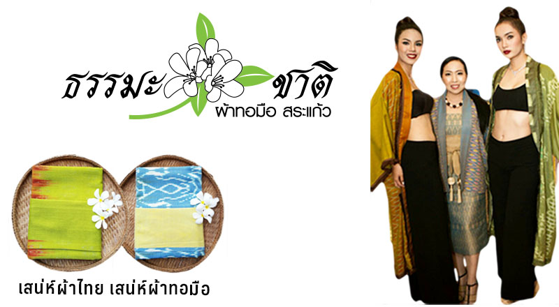 การสืบสานงานหัตถศิลป์ แผ่นดินแม่ การสร้างคุณค่า จากพลังแห่ง ภูมิปัญญาไทย การออกแบบ ผ้าไทย ให้มีความร่วมสมัย เสน่ห์ผ้าไทย เสน่ห์ผ้าทอมือ จากเส้นใยธรรมชาติ ภายใต้แบรนด์ "ธรรมะชาติ ผ้าทอมือ สระแก้ว"